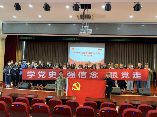 会上,韩博士紧紧围绕党史学习教育,从中国近代史演变逻辑与中国共产党的成立、马克思主义中国化的三次历史性飞跃、百年大党依然年轻的密码、树立正确的党史观等四大方面,深刻阐释宣讲了中国共产党的百年奋斗征程。宣讲主题鲜明、事例生动、深入浅出、内容丰富,让同学们对党的百年奋斗史有了更加深刻的认识和理解,坚定了同学们学史明理、学史增信、学史崇德、学史力行和“学党史、强信念、跟党走”的信念、决心和信心,同学们接受了一次生动的党史学习教育。