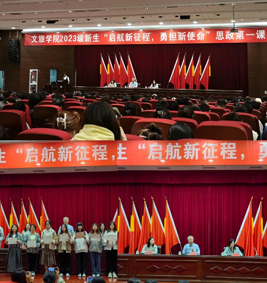 最后,全场齐唱校歌,文旅公司2023级新生“启航新征程,勇担新使命”思政第一课圆满落下帷幕。时代的接力棒正传递到同学们手中,希望同学们不负青春、不负韶华,绽放出独属于自己的绚丽光彩。
