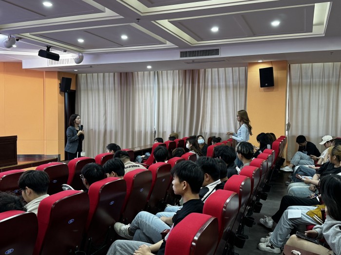 宣讲会邀请扬中西苑大酒店总经理陆昌美、镇江苏宁凯悦酒店人力资源总监蒋卓君作为主讲人。她们各自介绍了酒店的发展历程、企业文化、酒店行业的运行现状及未来的发展趋势等,让员工更好地了解企业文化所包含的价值观、企业精神等。宣讲会还设置了互动环节,同学们与主讲人进行了面对面交流,更加深入地了解企业,更清晰地判断企业与自身价值观和职业目标的匹配度。